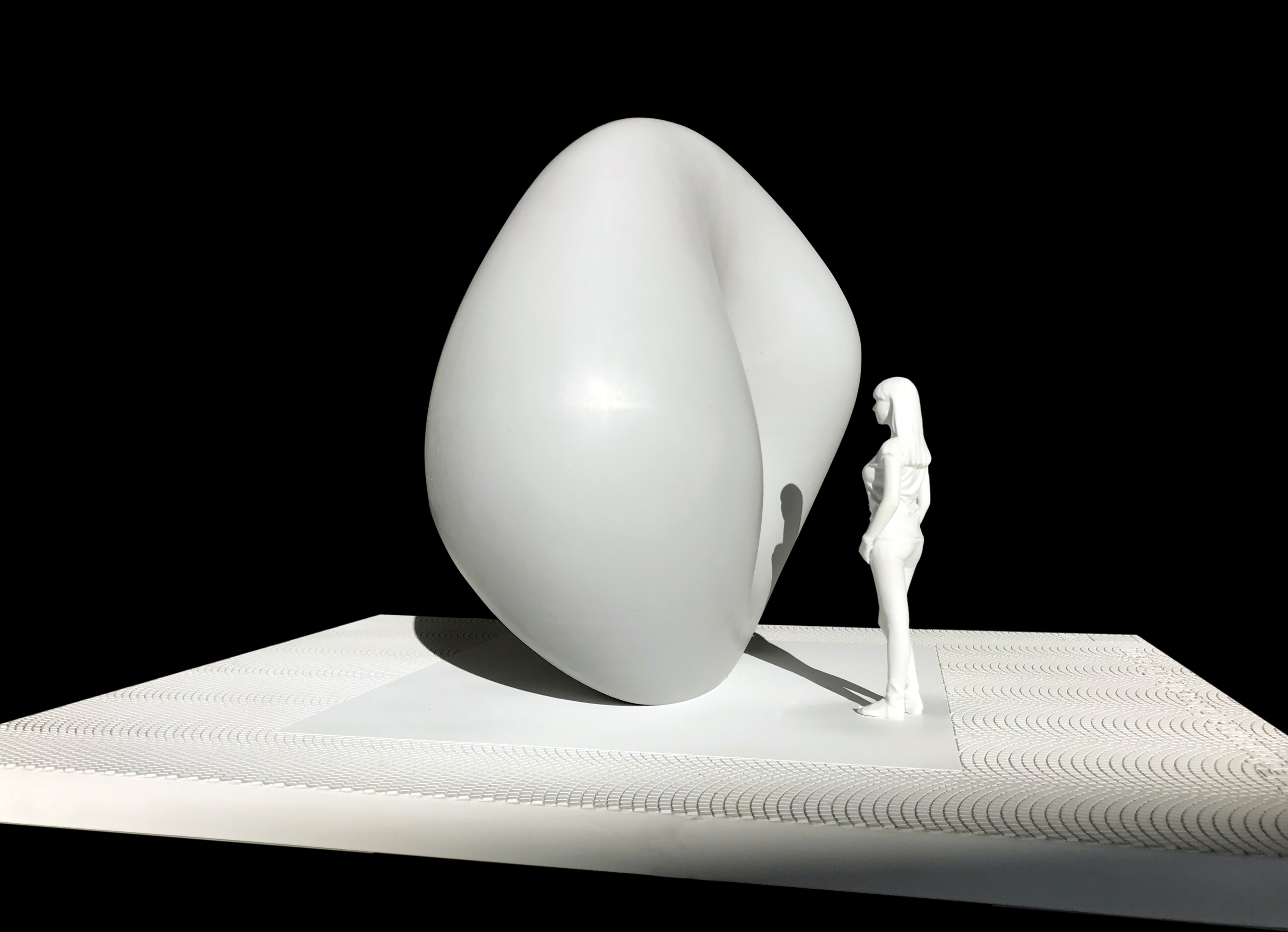 Úvodní dilema, zdali Edmundu Husserlovi věnovat figurativní sochu nebo abstraktní konceptuální dílo, rozhodla touha vyjádřit jeho odkaz abstraktní formou. Podobizna Husserla je již zachycena na pamětní desce na budově radnice. Vzhledem k faktu, že byl spíše introvertní skromné povahy a portrétování se vyhýbal, tak věřím, že by více ocenil snahu o realizaci pomníku fenomenologie, než vlastní podobizny. Jsem přesvědčen, že předkládaná socha vyvolá u veřejnosti větší zájem o Husserlovo dílo. Materializace fenomenologie do podoby sochařského díla je fascinující, avšak ryze subjektivní výkon. Koncept předkládané sochy je mnohavrstevnatý a vstřebal několik inspiračních impulsů z Husserlova života a z jeho výjimečného díla. Při formování sochy sehrála významnou roli i její urbanistická poloha a možnost interakce s publikem. V soutěžním podkladu s informacemi o Husserlově životě je zajímavá pasáž o jeho lásce k dalekohledům, které po celý život sbíral a provázely ho na každé procházce. Dalekohled přeneseně otvor-průzor je pro sochu nejvýraznější inspirací. Oculus-otvor-okno rámuje pozorovanou skutečnost ve veřejném prostoru Prostějova. Socha-oko láká kolemjdoucí k průhledům, současnému vnímání objektu ze všech úhlů, k nahlížení a smyslovému vnímání fenoménu, který se navíc mění v průběhu času a je možné jím přistupovat k „věcem samým“ dlouhodobě, neustále a možná i objevit jejich „neměnnou podstatu“. Geometrie sochy není popsatelná základními geometrickými tvary. Definuje ji plocha ze sítě bézierových křivek. Socha působí měkce, reaguje na průhledové urbanistické osy. Jejich pronikání do otvoru vytlačuje okolní hmotu, která reaguje i na eurytmickou kompozici mezi řadou domů a parkovištěm. Měkkost sochy vábí další ze smyslů – hmat. Améba je odrazem proměny lidského vědomí. Socha toužebně přijímá světlo a stín. Slunce jeví sochu proměnlivě v různou denní dobu v různých ročních obdobích (viz fotodokumentace modelu). Oculus promítá sluneční paprsky do plochy náměstí a posiluje interakci mezi pozorovatelem a sochou. Socha svým tvarem a vztahem ke Slunci odráží Husserlovo zaujetí pro matematiku a astronomii. Inspirací pro výběr materiálu sochy byla opět informace z jeho života. Husserl vydal během života jen dvě knihy, většina jeho myšlenek zůstala v rukopisných poznámkách, na lístečcích, které třídil a přepisoval do delších textů. Metaforicky jsou lístečky znázorněny pomocí fragmentů kamene – mramoru, které jsou pomyslně vrženy do prostoru a zality betonem. Broušením a leštěním betonového odlitku se zvýrazní lesklé a matné plochy na povrchu sochy. Světlá barva bílého cementu a mramoru podtrhuje ucelené vnímání jednolitého objemu sochy. Budeme svědky jemné nuance na povrchu „masivní zaoblenosti“. |